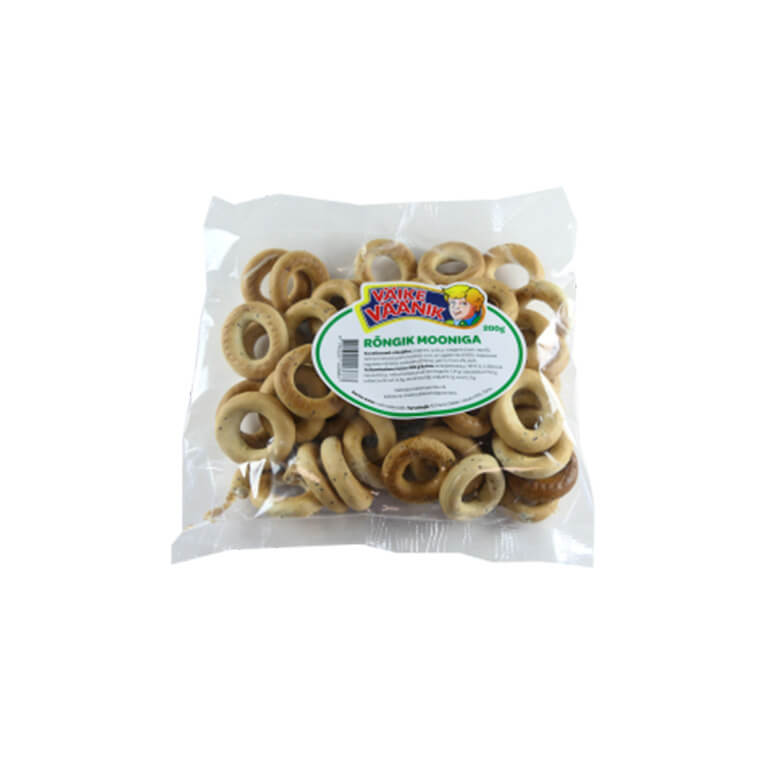 -54% -54% Rõngik mooniga Maris Gilden 200g Parim enne: 08.08.2026Hulgipakend: 24 Current price: 0,59 € Old price: 1,29 € max) count = max; " aria-label="Quantity"> Lisa korvi Product offer details Tavahind 1.29 € Sina säästad Kilohind 2,95 €/kg Kaal 200 g Toote kirjeldus Koostisosad: NISUJAHU, joogivesi, suhkur, margariin (vesi, rapsiõli, taimsed rasvad (palm, kookos), sool, emulgaatorid (E476), happesuse regulaator (E330), toiduvärv (E160a), pärm, moon 2%, sool. Seotud tooted Krõbedad Pizzetta krõpsud “Marinara” 70g 22,71 €/kg Parim enne: 15.01.2026 Hulgipakend: 12 1,59 € 2,19 € -27% Kartulikrõpsud paprikamaitselised Oven Chips, ESTRELLA, 125 g 10,32 €/kg Hulgipakend: 10 Parim enne: 20.10.2025 1,29 € 2,99 € -57% Maisikepikesed suhkruga, MÕNGEL, 100 g 8,90 €/kg Parim enne: 25.03.2026Hulgipakend: 20 0,89 € 1,41 € -37% Mahlane kana-karri, PÕLTSAMAA VALMIS!, 380g 7,87 €/kg Parim enne: 10.04.2026Hulgipakend: 6 2,99 € 4,06 € -26%